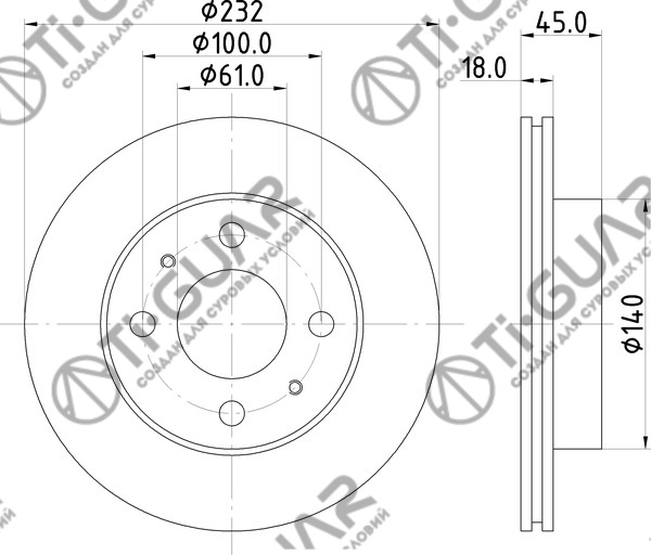 Диск тормозной /передний /TI-GUAR для Nissan Sunny B14 1994-1997 Almera Pulsar N15 1995-2000; 232/18мм; TG-40206-0M602 PD3213206S ST402060M602 12137 0986478650 09694310