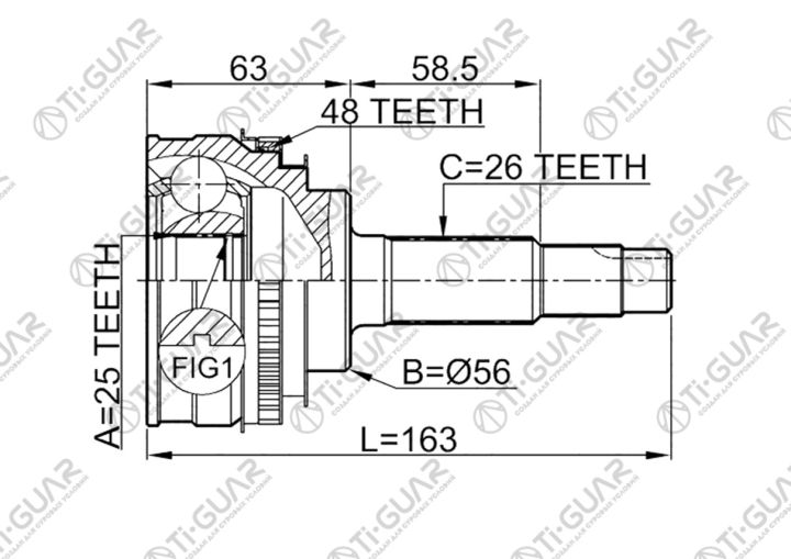 ШРУС наружный /правый /левый /TI-GUAR для Toyota Harrier 1997-; 25*56*26; TG-9565Z48; (TO-065A48 TO-E065A TO005) 4341048030 0110065A48 0110005A48